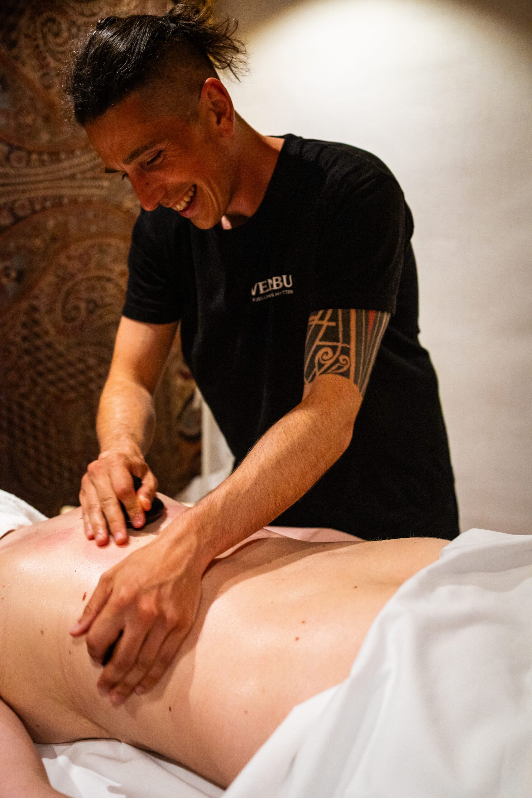- Masáž lávovými kameny – Warm stone treatment for muscular relaxation and grounding